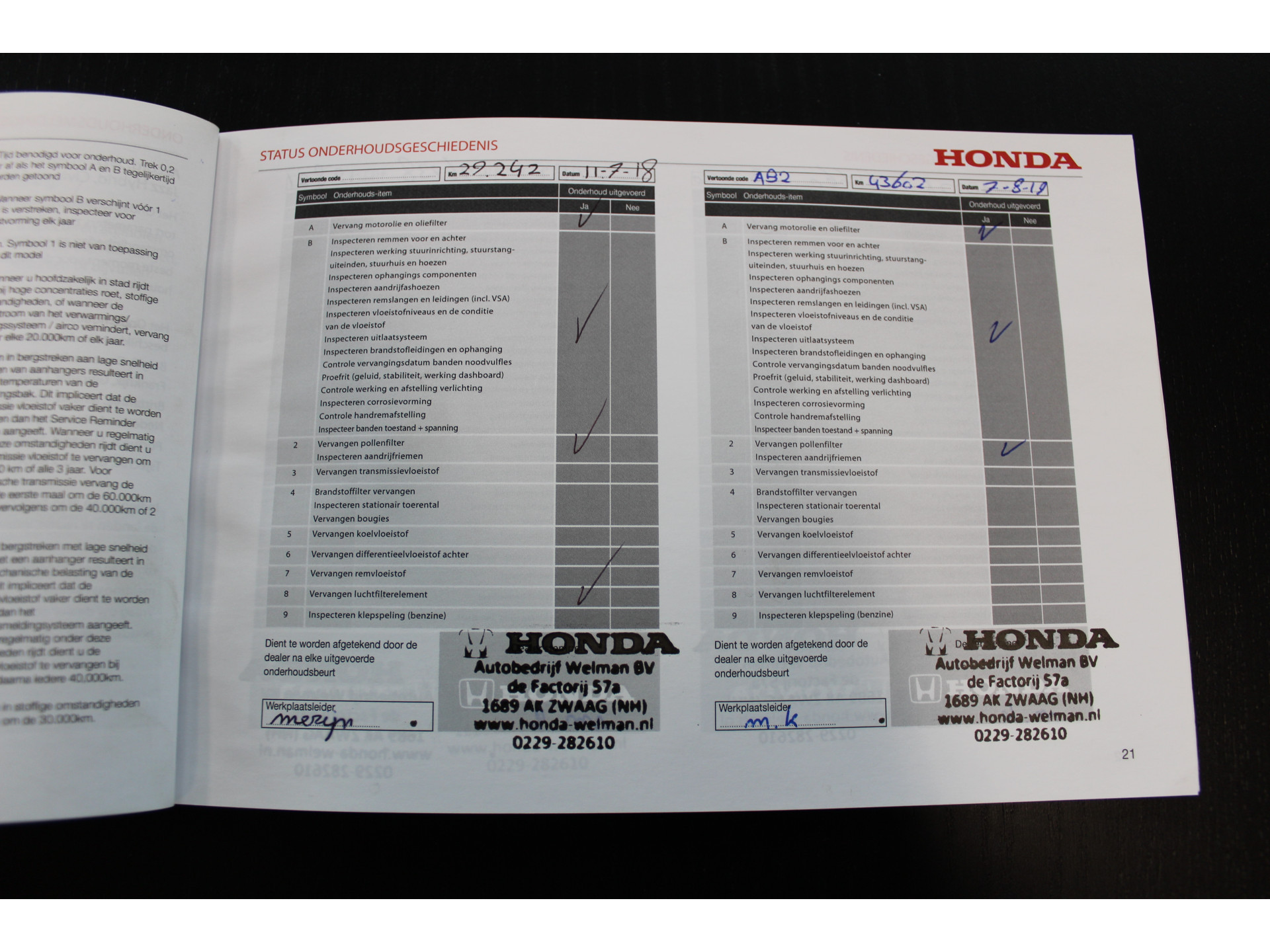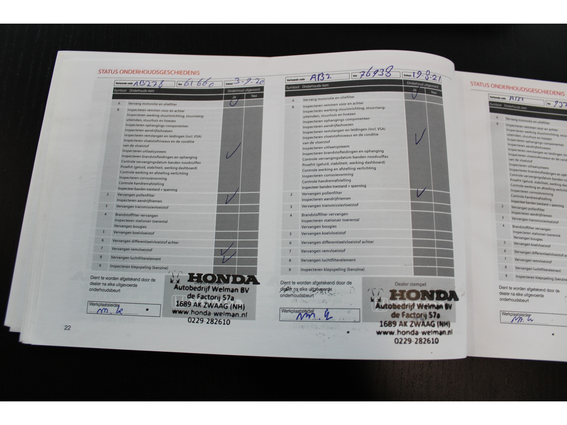- Onderhoud volgens schema - Nieuwe APK keuring - Nationale autopas - Poetsen van de auto - 25 euro brandstof - Tenaamstelling voertuig - Vrijwaren inruilauto indien van toepassing
