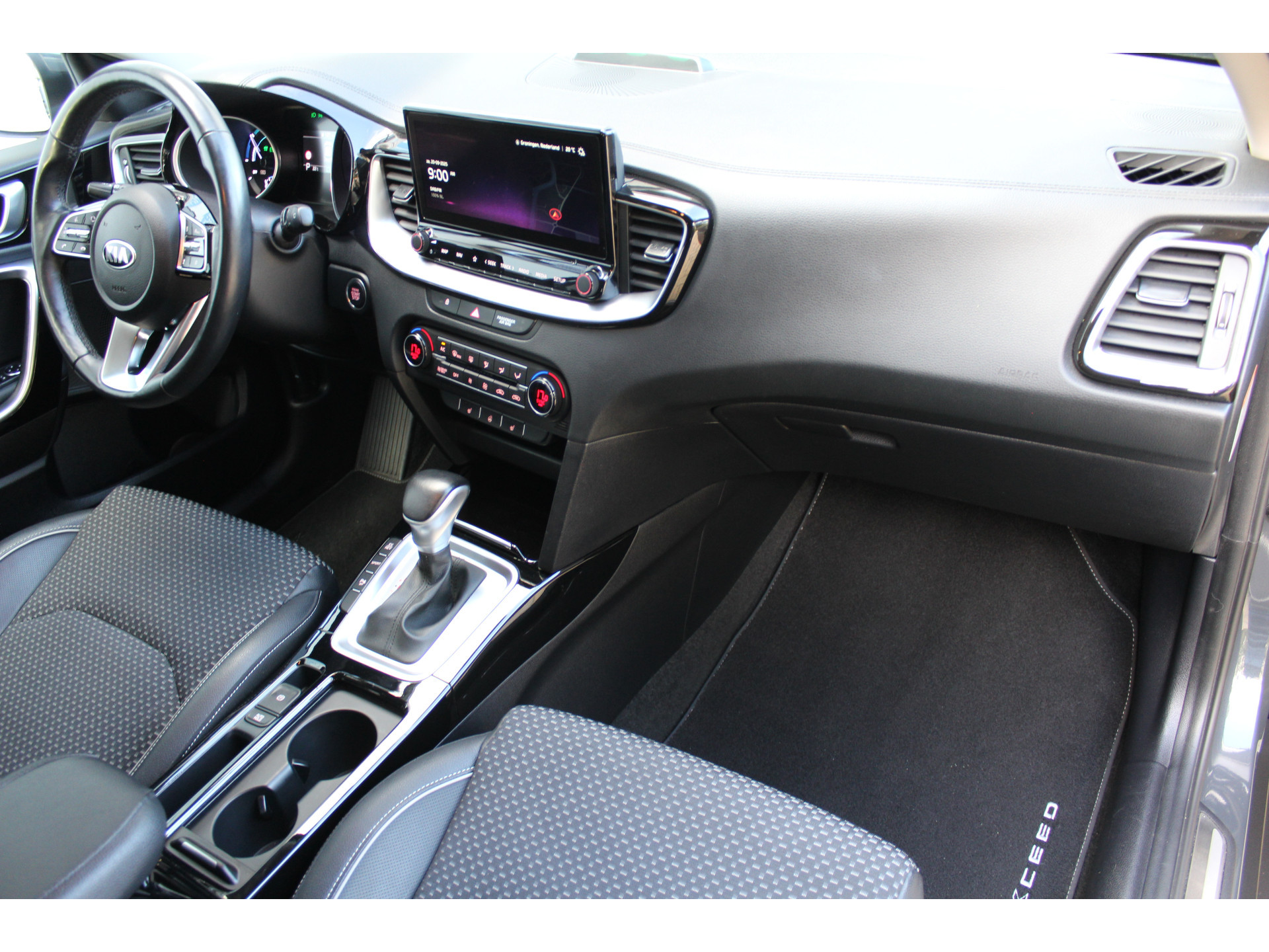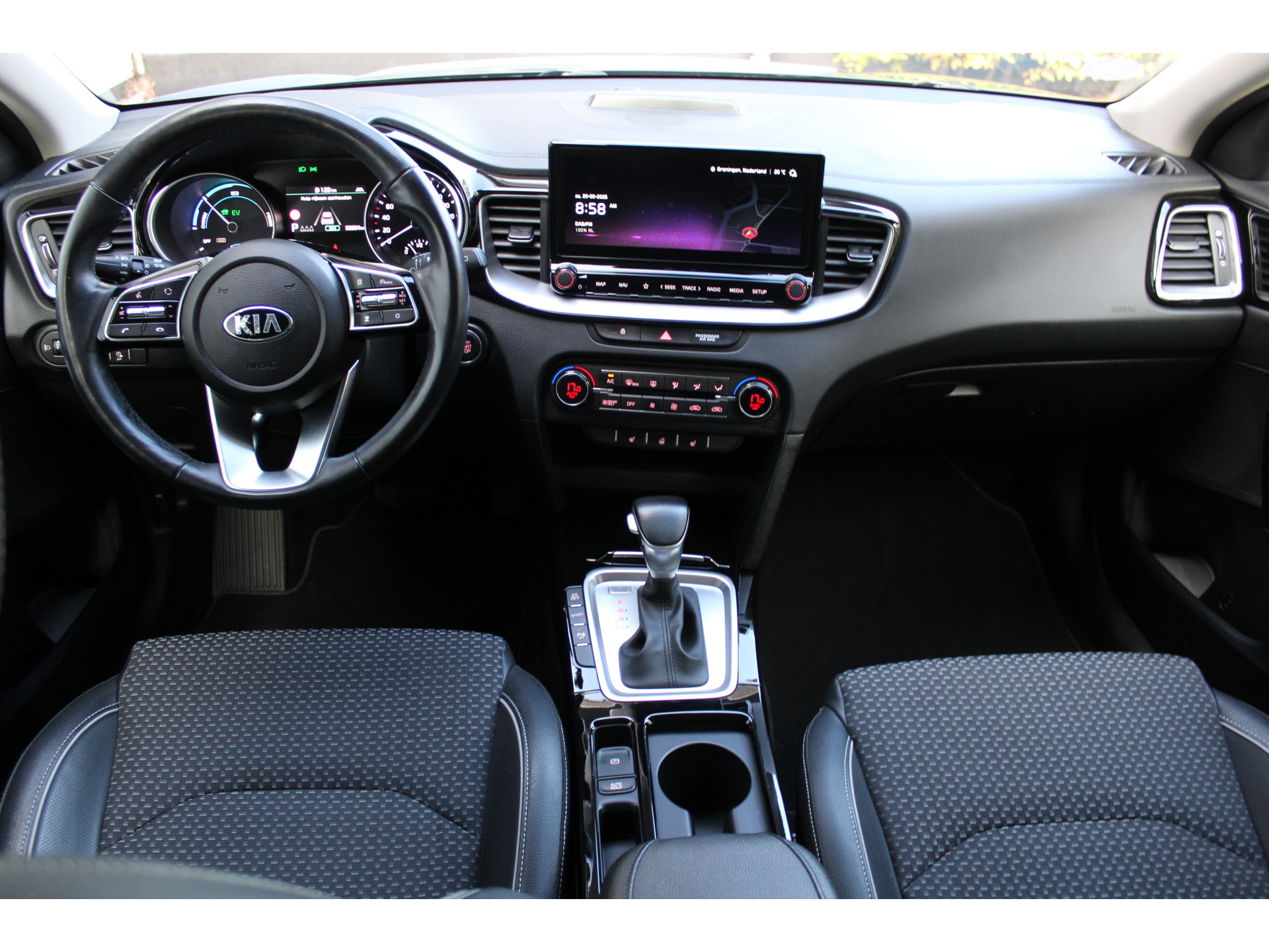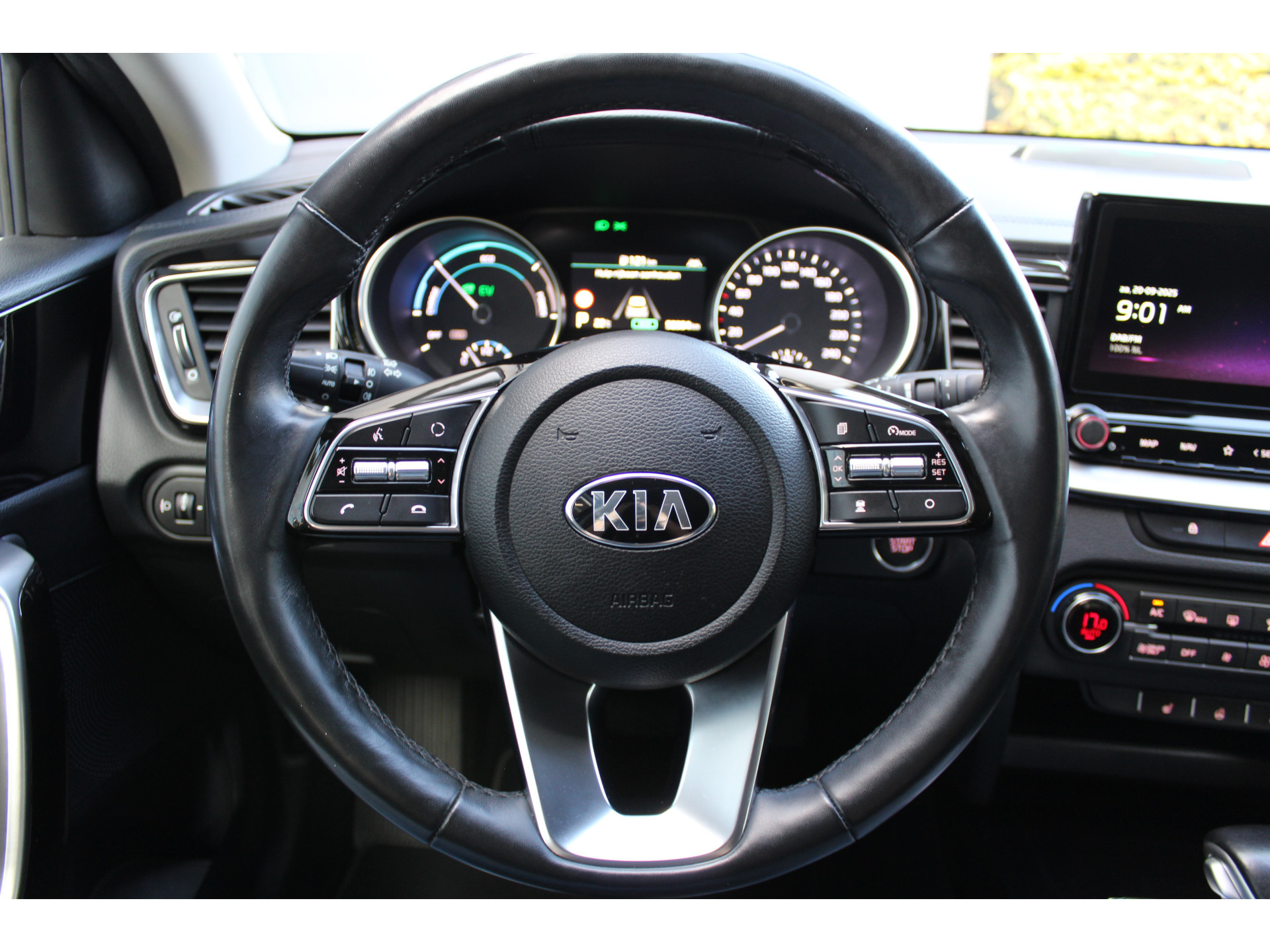 Omdat u nou eenmaal geen ogen in uw achterhoofd heeft, is het altijd lastig om achteruit te rijden zonder brokken te maken. De achteruitrijcamera lost dat probleem op. Adaptive cruise control is veilig en comfortabel. De snelheidsregelaar houdt automatisch afstand tot het voertuig dat voor u rijdt. In deze auto wordt u elke rit opnieuw bijgestaan door een gebruiksvriendelijk full map navigatiesysteem, terwijl u luistert naar het glasheldere geluid van het audio-installatiesysteem met DAB-radio. Het comfort wordt verhoogd door de aanwezige automatische airconditioning. Natuurlijk is een complete auto als deze ook voorzien van sensoren die de omgeving in de gaten houden. Deze Kia heeft niet alleen een automatisch inschakelbare verlichting aan boord, maar ook een regensensor. Wat u ook in deze auto kunt vinden zijn dashboard met spraakbediening, keyless entry, automatisch dimmende binnenspiegel, lederen stuur en lederen versnellingspook.