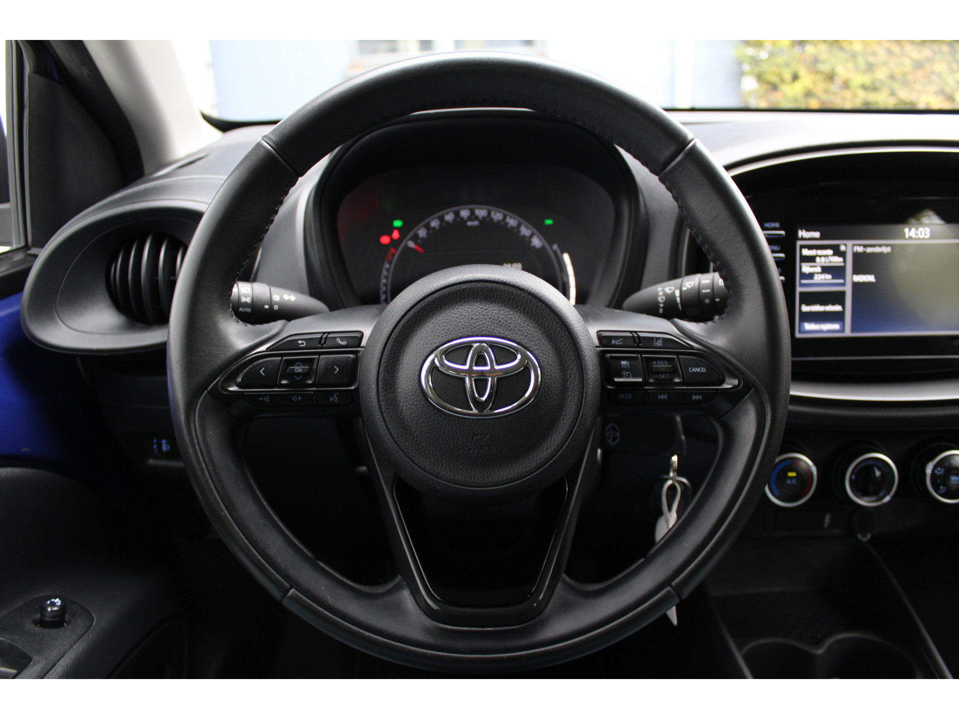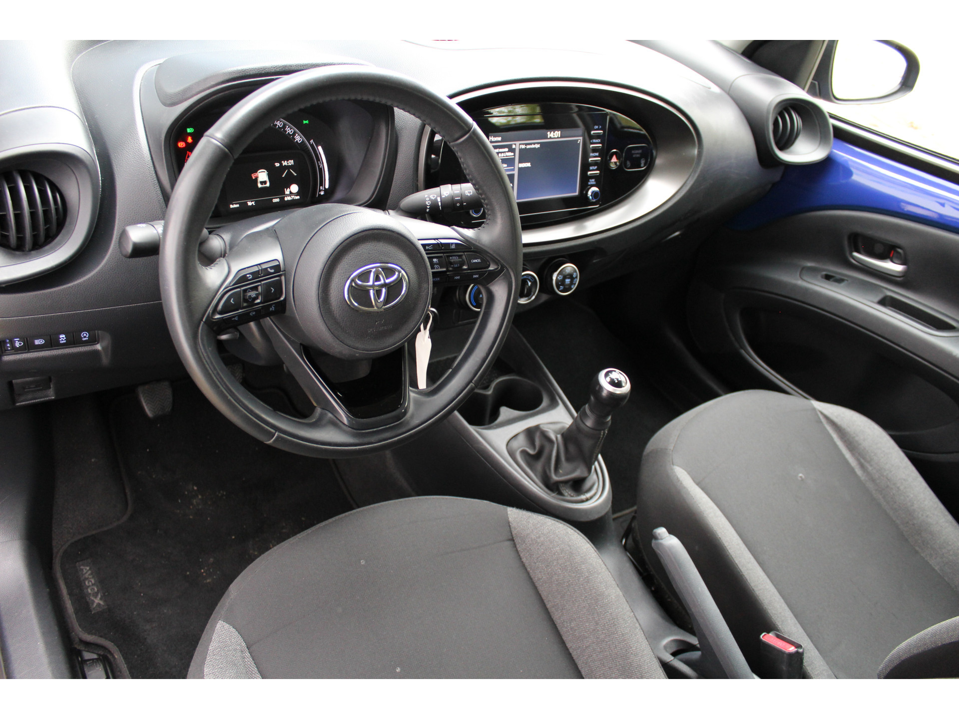 In deze auto zijn verschillende technologieën aanwezig die voor u het verkeer en de omgeving in de gaten houden en die desnoods ook kunnen remmen of bijsturen. Belangrijk voor uw veiligheid en die van uw passagiers is de verkeersbord-detectie in deze auto. Het Lane-keeping systeem registreert permanent of u binnen de lijnen van de rijstrook blijft; dwaalt u onbedoeld af, dan waarschuwt het systeem en corrigeert de koers. Deze Toyota Aygo X blijft altijd alert. Zo wordt gebruik gemaakt van forward collision warning. Bij het mogelijke risico op een aanrijding met een voertuig voor u, slaat het systeem alarm. U bent mede dankzij brake assist en bandenspanningcontrolesysteem steeds veilig onderweg.